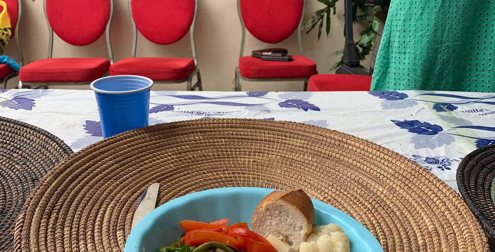 On Sunday we were invited to Mama Suzanne's (the lady who cooks for us) for Easter lunch. There was so much food: pork, lamb, chicken, veggies, mangos....